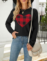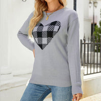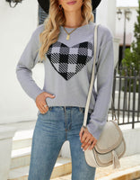 Women's Loose Sweater Round Neck Fashion Pullover Plaid Love Sweater Women