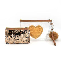 Gold Sequin Heart Cosmetic Bag Set (2 Pcs)