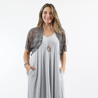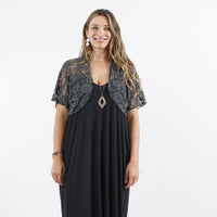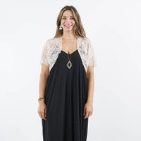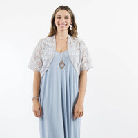 Give your favorite sleeveless outfit an extra layer of romance with this bolero that features rose sheer lace. Lightweight. Layering for sleeveless or strapless dress. 92% nylon / 8% spandex Hand wash cold Imported from Mexico