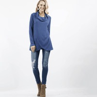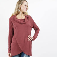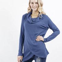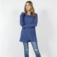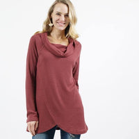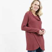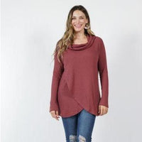 Brushed Waffle Knit Cowl Neck Tulip Front Tunic