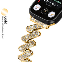 7-word Diamond Alloy Metal Classic Style Watch Band