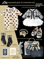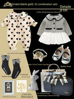 Color: little Princess Black Gold (combination A) set gift box spring and summer short sleeve, little Princess Black Gold (combination B) set gift box spring and autumn long sleeve, little Princess Black Gold (combination C) set gift box spring and autumn long sleeve, little Princess Black Gold (combination D) set gift box autumn and winter long sleeve, little Princess Black Gold (E combination) set gift box autumn and winter long sleeve, little Princess Black Gold (F combination) set gift box spring and autumn long sleeve, little Princess Black Gold (G combination) set gift box autumn and winter long sleeve