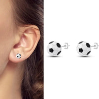 Black And White 3D Soccer Ball Shape Stud Earrings
