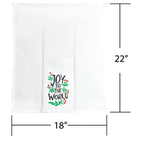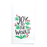 With a festive Joy to the World design, this flour sack style towel is a great Christmas decoration and gift. Use in kitchen as a dish towel or in the bath as a hand towel. Made of 100% cotton, it's absorbent and low-lint. Machine wash and dry. Unfolded size is about 18" x 22". Processed and screened by hand in the USA.
