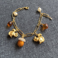 Enamel Glazed Acorn Squirrel Charm Bracelet