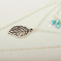 Trendy boho-style three layer necklace with leather, leaf, and turquoise bead charms. Pair this with some cute earrings to match and you have the perfect gift!