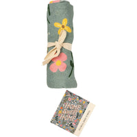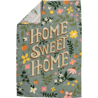 A cotton kitchen towel featuring hand illustrated floral designs and vibrant colors with a "Home Sweet Home" sentiment. Machine-washable.