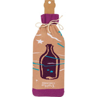 A creative alternative for a traditional gift bag, this washable and re-useable knit bottle sock features a "Let's Be Partners In Wine" sentiment with wine bottle and wine glass designs. Hangtag doubles as gift tag.