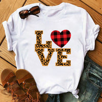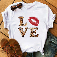 LOVE Leopard Print Lips Short-sleeved Top Bottoming Shirt