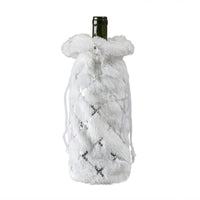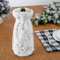 Plush Snowflake Sequins Christmas Drawstring Wine Bottle Bag