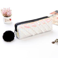 12 colors to choose from. Sequin zipper pouch and pom-pom zipper pull.