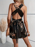 V-neck Sleeveless Backless Floral Print Shorts Jumpsuit
