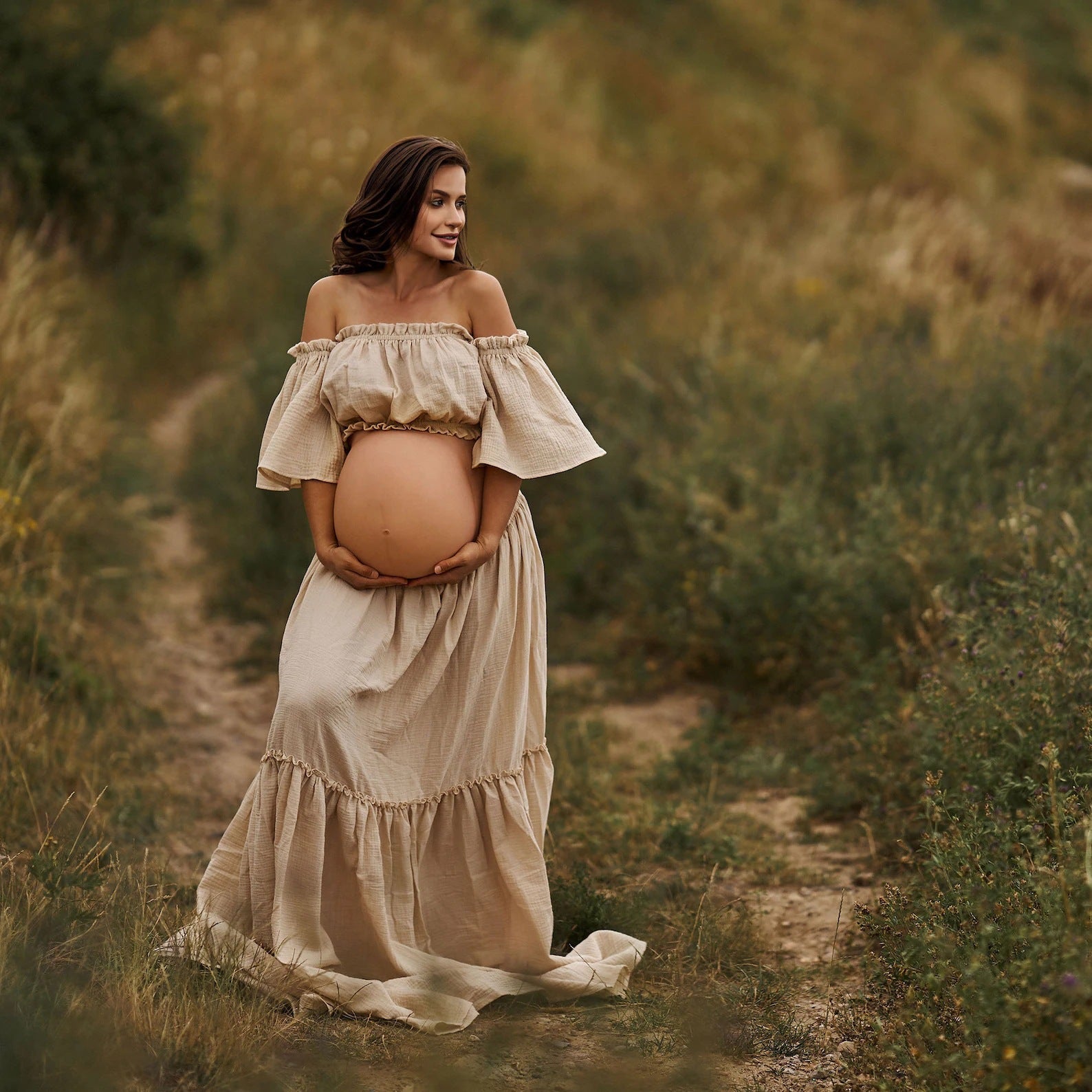 Bohemian Style Cotton Long Skirt Suit Two-in-one Photography Skirt Suit Off-neck