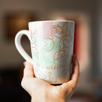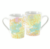 ‘Be A Wildflower' mug is a fun and empowering reminder to always be yourself and be unique as you enjoy your daily coffee or tea. ‘Be A Wildflower In A Field of Roses’ This colorful and sassy COMMON GROUNDS™ design features a pastel watercolor background with golden yellow floral outlines. Crafted of durable stoneware and holds 11 fl. oz. Recommended care: Microwave and dishwasher safe.