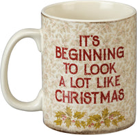 A timeless holiday staple piece, this stoneware coffee mug features a vintage-inspired Santa Claus design, double-sided "Merry Christmas / It's Beginning To Look A Lot Like Christmas" sentiments, and holly background. Microwave, oven, dishwasher, and food safe; holds 20 oz.