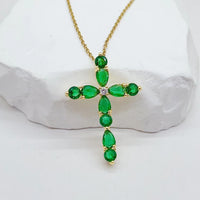 Fashion Jewelry Micro Inlay Colorful Zircon Water Drops Cross Necklace