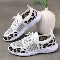 White Shoes Women Leopard Print Lace-up Sneakers Sports
