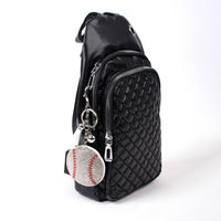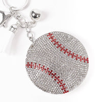 Llavero con borla deportiva de béisbol con cristales brillantes-31250WH-S
