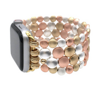 Correa/pulsera de reloj elástica con cuentas de disco de acero multitono intercambiables solo para relojes inteligentes.