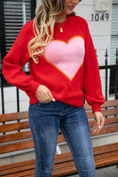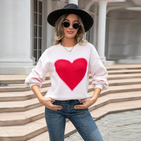 Round Neck Love Sweater Pullover Plus Size Peach Heart Sweater