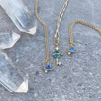 Planet & Star es una piedra de circón azul en cadenas de 16"