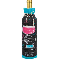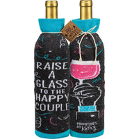 Una alternativa creativa a una bolsa de regalo tradicional, este calcetín tejido para botellas, lavable y reutilizable, presenta el mensaje "Levanta una copa a la pareja feliz" con copas de vino en relieve y diseños de confeti de celebración. Hangtag también funciona como etiqueta de regalo.