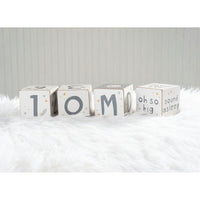 Un conjunto de cuatro bloques de madera con un tema de galaxia. Contiene dos bloques numerados, un bloque de período de tiempo y un bloque de sentimiento con diferentes diseños. Una parte de la exclusiva colección Happy + Bright. Creado con pintura no tóxica. Los bloques de cuenta regresiva están destinados a contar desde 32 días. Bloque uno: 0, 1, 2, 3, 4, 5; Bloque dos: 0, 1, 2, 7, 8, 9/6.