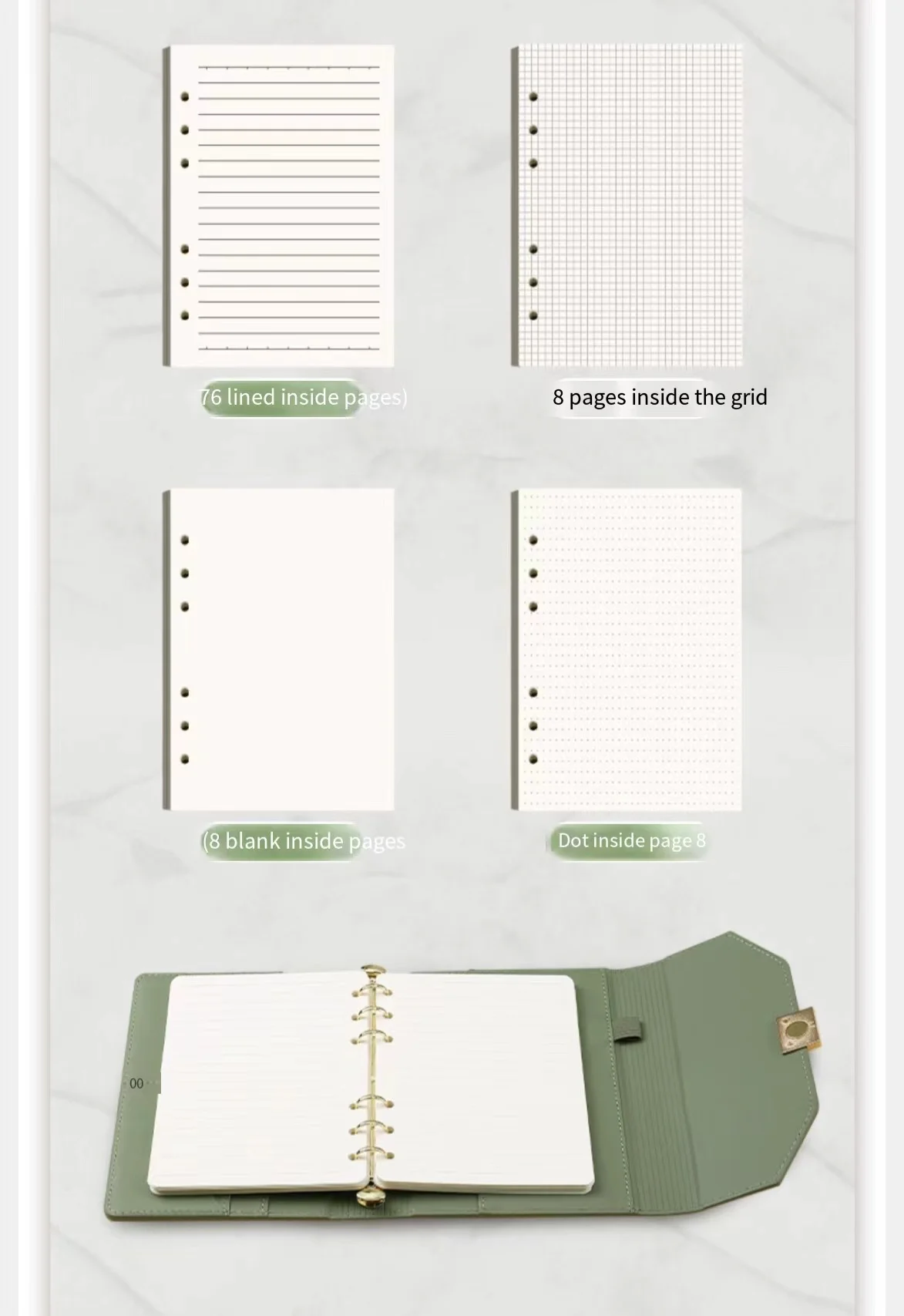 Color de la cubierta: 13004-A6 Hojas sueltas verde matcha, 13004-A6 Hojas sueltas azul medianoche, 13004-A6 Hojas sueltas marrón hoja de arce, 13004-A6 Hojas sueltas negro obsidiana, 13004-A6 Hojas sueltas verde turquesa, 13004 -A5 Hojas sueltas verde matcha, 13004-A5 Hojas sueltas verde turquesa, 13004-A5 Hojas sueltas azul medianoche, 13004-A5 Hojas sueltas marrón hoja de arce