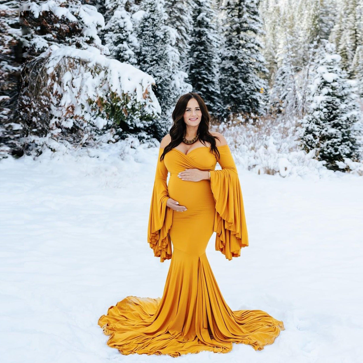 Maternity Ruffle Sleeve Trailing Dress Long Dress Photography Dress