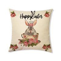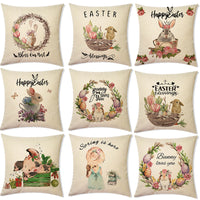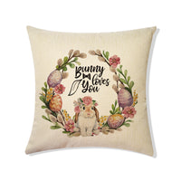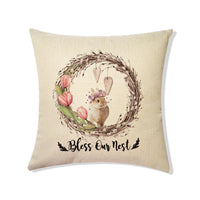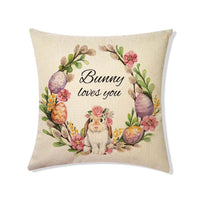 Fundas de almohada de lino con estampado de conejito de Pascua de primavera