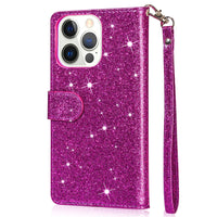 Zipper Glitter Leather Flip Card Wallet iPhone Case