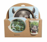 Ensemble de vaisselle pour enfants, bol en Fiber de bambou naturel, cinq pièces, avec tasse, cuillère, assiette, fourchette, plats pour bébé, assiette cadeau, 5 pièces