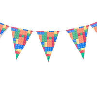 Décor de fête d'anniversaire sur le thème des briques de construction
