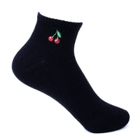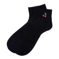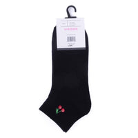 Chaussettes basses côtelées avec broderie cerise pour femme-LNVS3002 : Noir