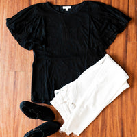 Ce top est ultra tendance avec ses manches fluides et volantées. C'est un matériau léger composé de viscose et de lin, il est donc parfait pour les chaudes journées ou nuits d'été !