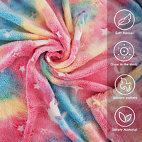 - Couverture qui brille dans le noir : la couverture licorne RAINBEAN peut briller dans le noir. Exposez-le simplement à une source de lumière vive ou au soleil pendant environ 10 à 15 minutes. Plus la lumière est vive, plus la couverture sera résistante dans l'obscurité. mystérieux et intéressant.