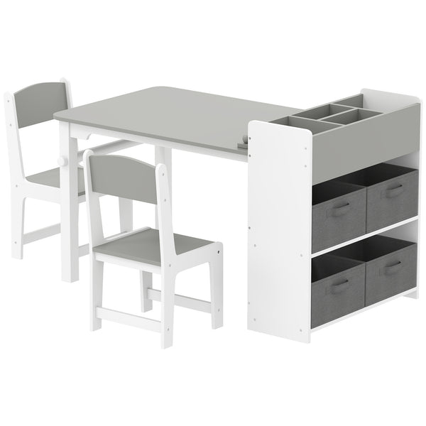 Desk And Chair Set With Paper Roll, Kids Activity Craft Table With Storage Shelves And Drawers, Gray $177.95